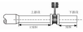 對(duì)于小口徑大流量,必須擴(kuò)管安裝,同時(shí)保證流量計(jì)的前直管段≥15D,后直管段≥5D