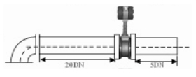 3.彎管的安裝 如果流量計(jì)的前端有90°彎頭或T型接頭,要保證流量計(jì)的前直管段≥15D,后直管段≥5D |